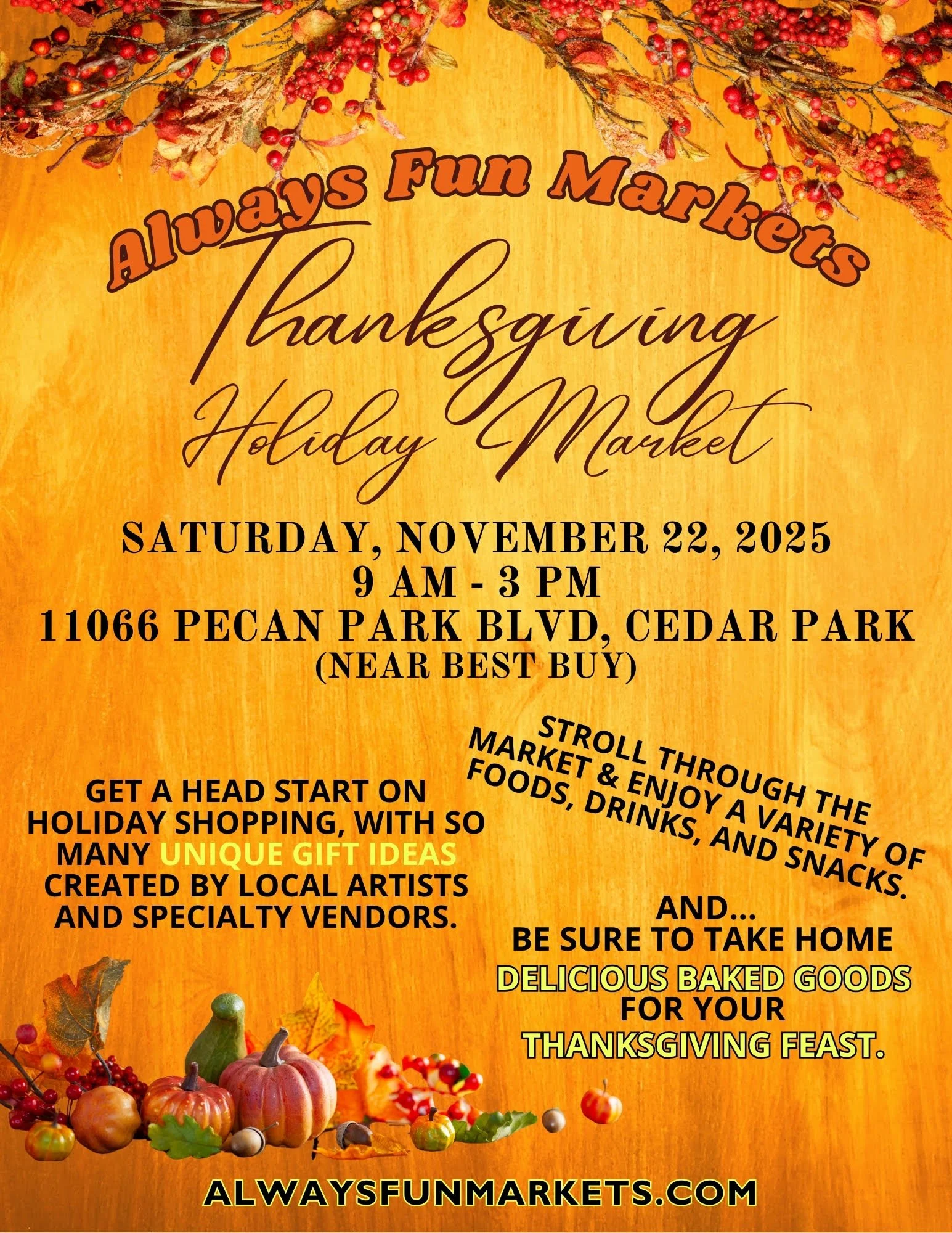 #MemorialDayMarket #CedarParkEvents #ShopLocal #AlwaysFunMarkets #LiveMusic #HandmadeGoods #SupportLocalBusinesses